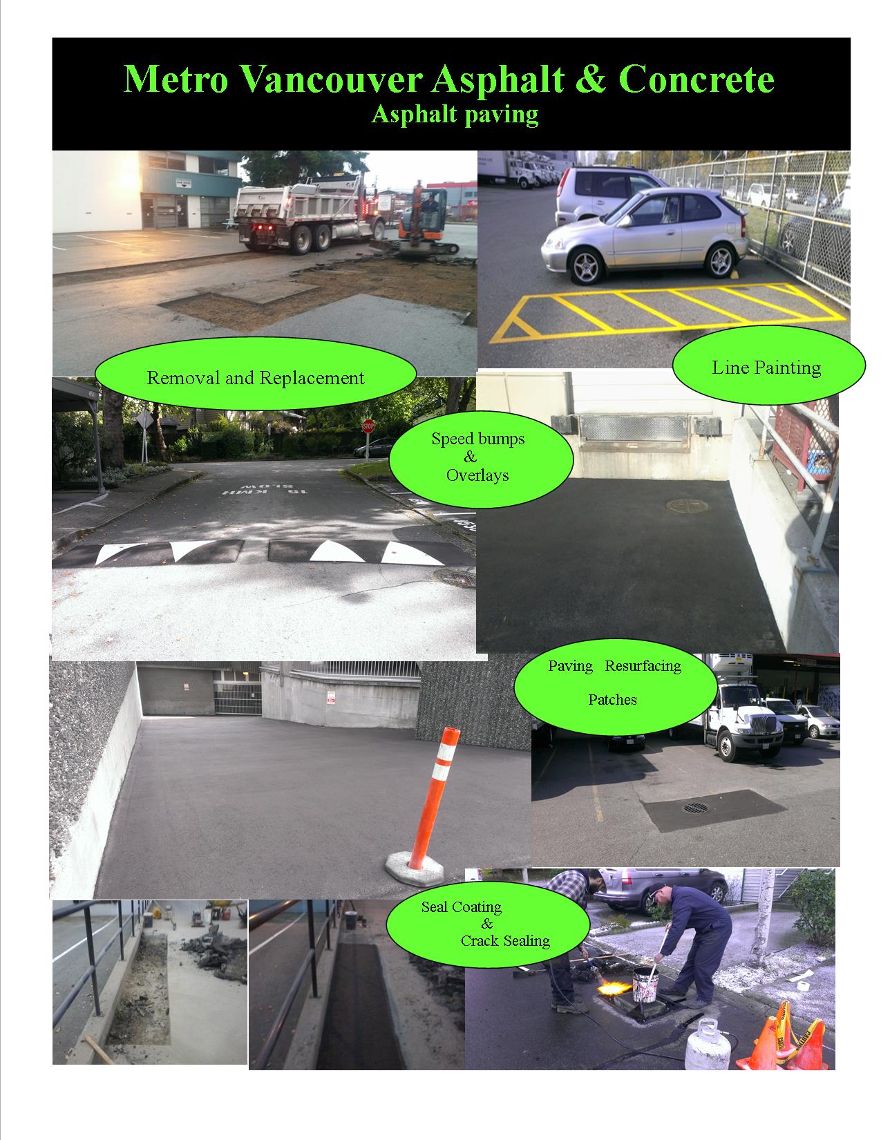 Metro Vancouver Asphalt and Concrete Repair specializes in concrete and asphalt paving and repair as well as new installations. We focus on small to mid size jobs with an emphasis on reliable professional service.